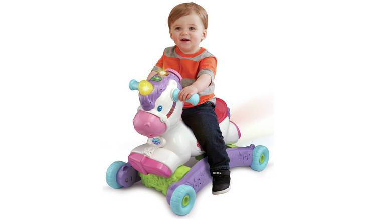 This grow with me unicorn transforms from a rocker to a ride on in seconds.